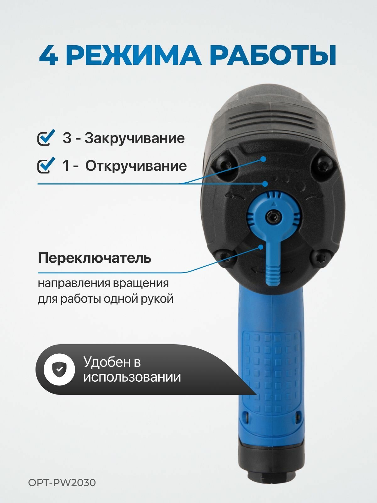 Гайковерт пневматический ударный, привод 1/2″, 1350 Нм 7800 об/мин OPT-PW2030: сравнение цен, характеристики, фото, актуальное наличие и цены.