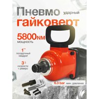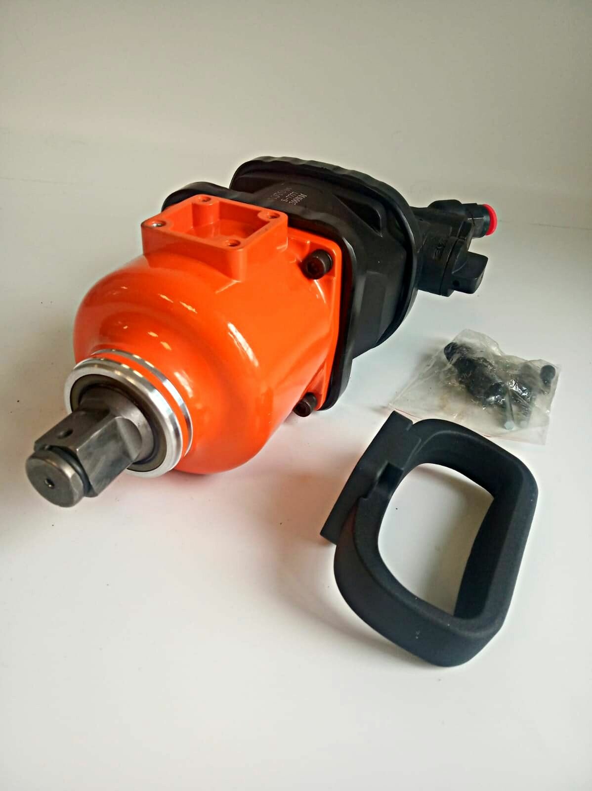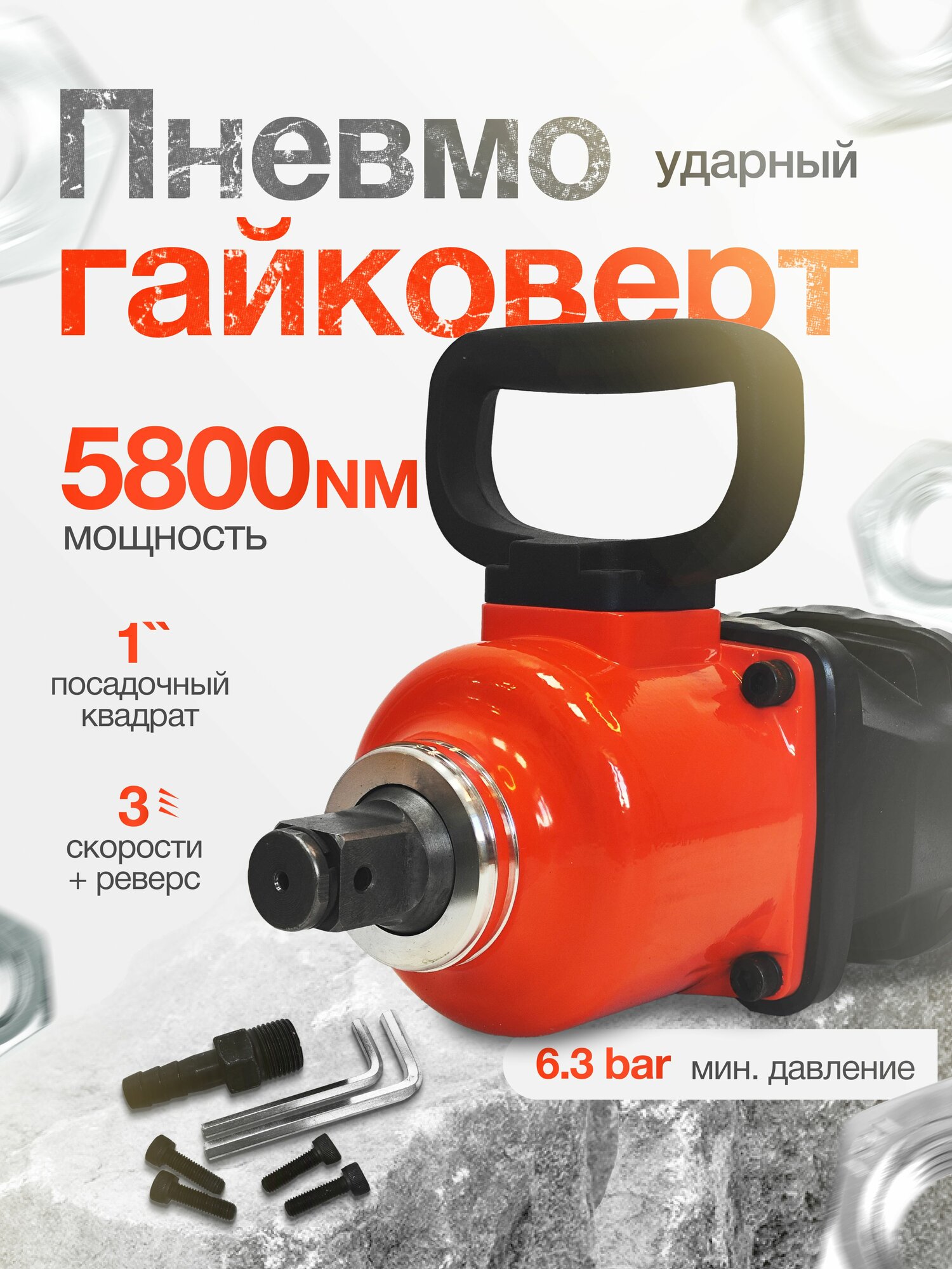 Пневматический гайковерт — профессиональный инструмент, позволяющий затягивать самые крупные болты и гайки без особых усилий. Предназначен для проведения монтажных/демонтажных работ с крепежом грузовых автомобилей и другой крупной техники, работает от источника сжатого воздуха. Используется на СТО, сборочных цехах, производственных предприятиях. Характеристики: 3 режима скорости, реверс, крутящий момент 5800 NM, частота вращения шпинделя 5200 об/мин, давление: 8.5 bar, посадочный диаметр 1". Ударный.