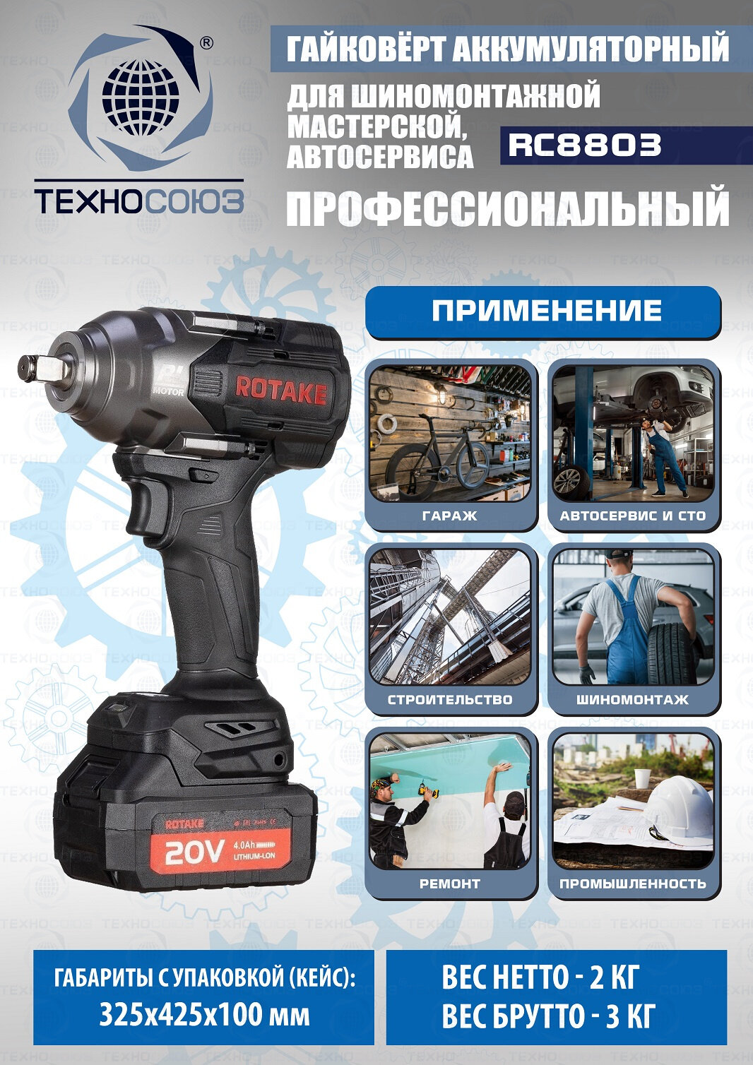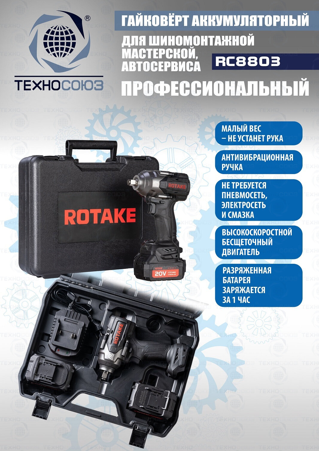 Купить Гайковерт Rotake RC8803, 20V, 1080 Н·м, 2 АКБ, 4 Ач, LED-подсветка, кейс с доставкой по всей России. Гайковерт Rotake RC8803, 20V, 1080 Н·м, 2 АКБ, 4 Ач, LED-подсветка, кейс: сравнение цен, характеристики, фото, актуальное наличие и цены.