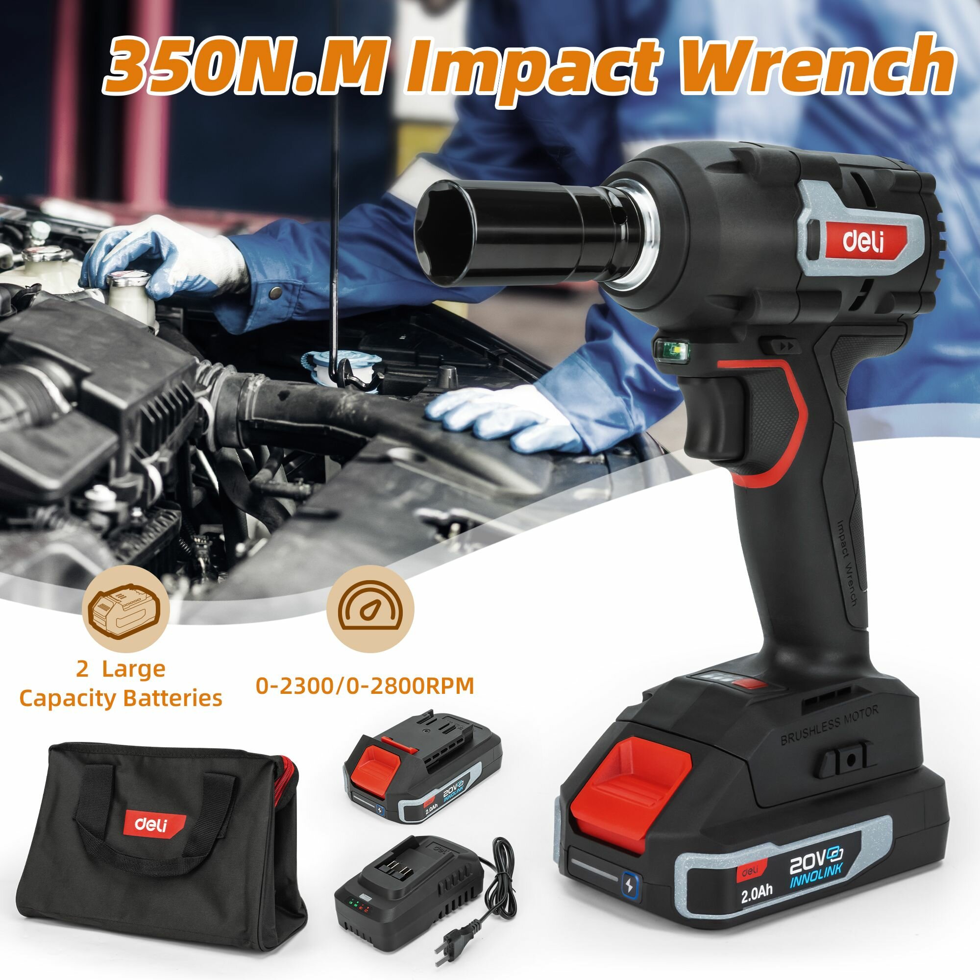Гайковерт ударный аккумуляторный 350Нм Deli DE-BS20-1D2 (2АКБ, 20Вх2Ач + ЗУ, 0-2800об/мин, 0-3600уд/мин, сумка): сравнение цен, характеристики, фото, актуальное наличие и цены.