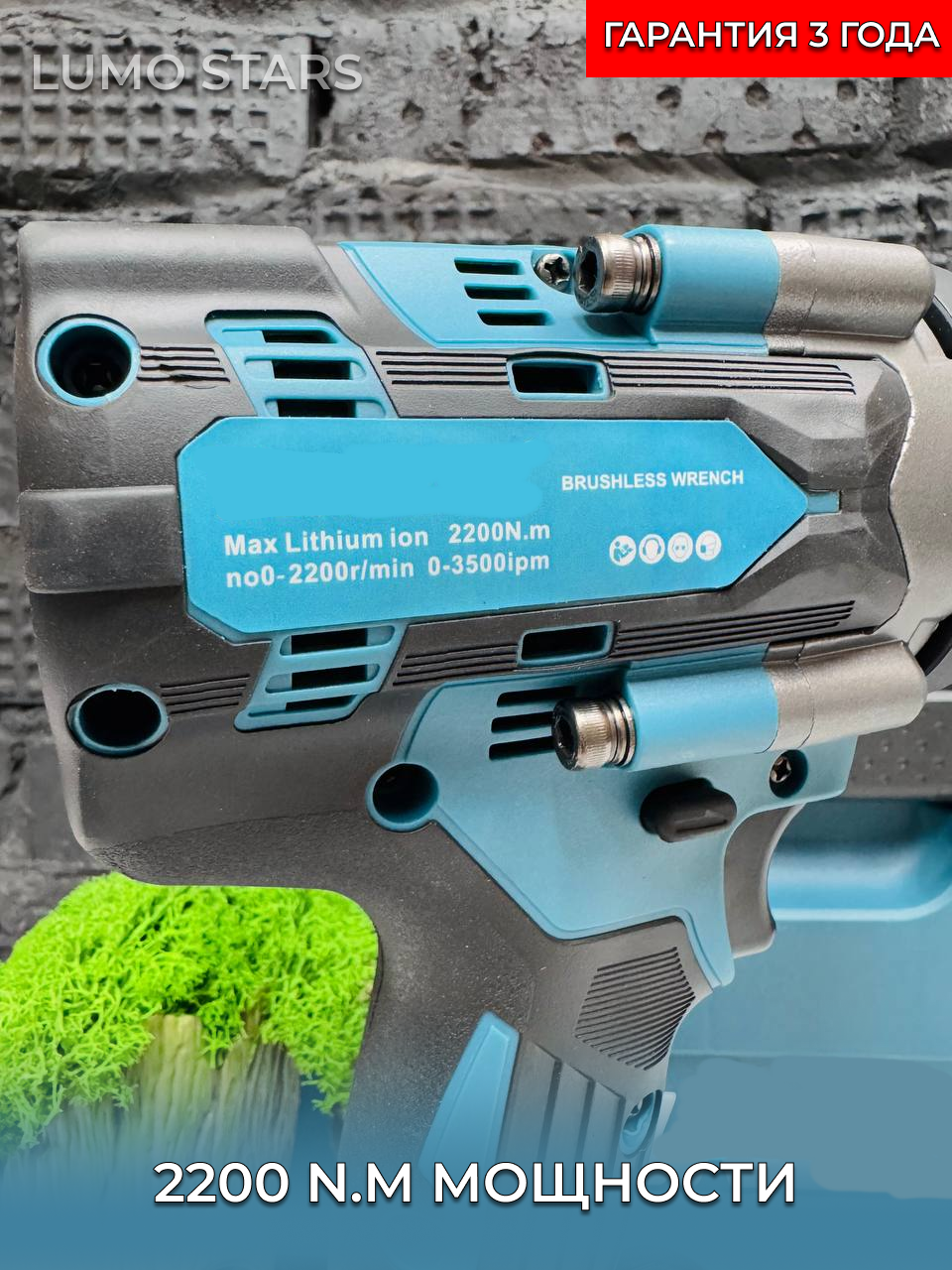 Аккумуляторный гайковерт оснащен бесщеточным двигателем, что гарантирует долгий срок службы.
