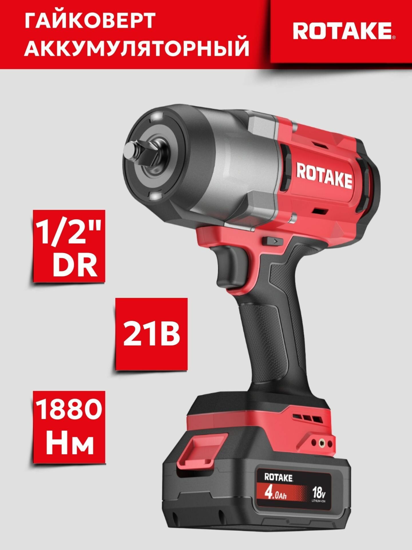 Купить Гайковерт ударный аккумуляторный бесщёточный 1/2″DR, 18В, 1880 Нм, 8813 (T3-40D), ROTAKE с доставкой по всей России.