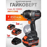 Купить Бесщеточный ударный гайковерт Anycons AC-SD-850, 850Нм, 21В, 2 акб, AC-SD8502 с доставкой по всей России.