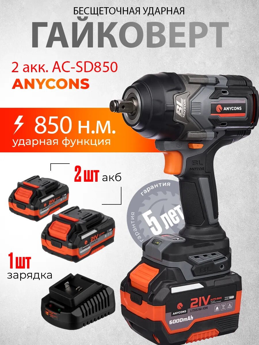 Бесщеточный ударный гайковерт Anycons AC-SD-850, 850Нм, 21В, 2 акб, AC-SD8502: сравнение цен, характеристики, фото, актуальное наличие и цены.