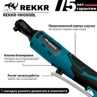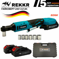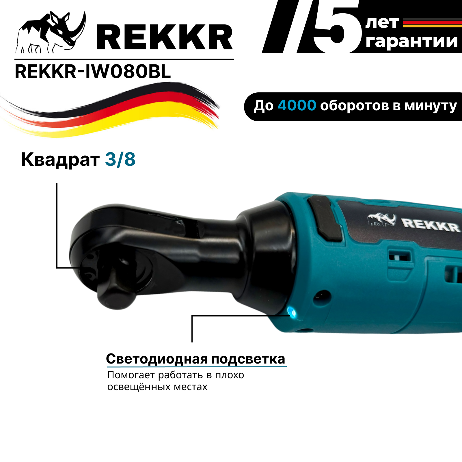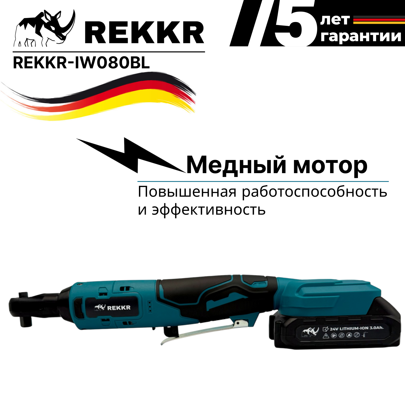 Купить Гайковерт угловой, аккумуляторный, щеточный REKKR IW080BL, 2 аккумулятора 24В 3.0Ач, ударный, квадрат 3/8, кейс, зарядка с доставкой по всей России.