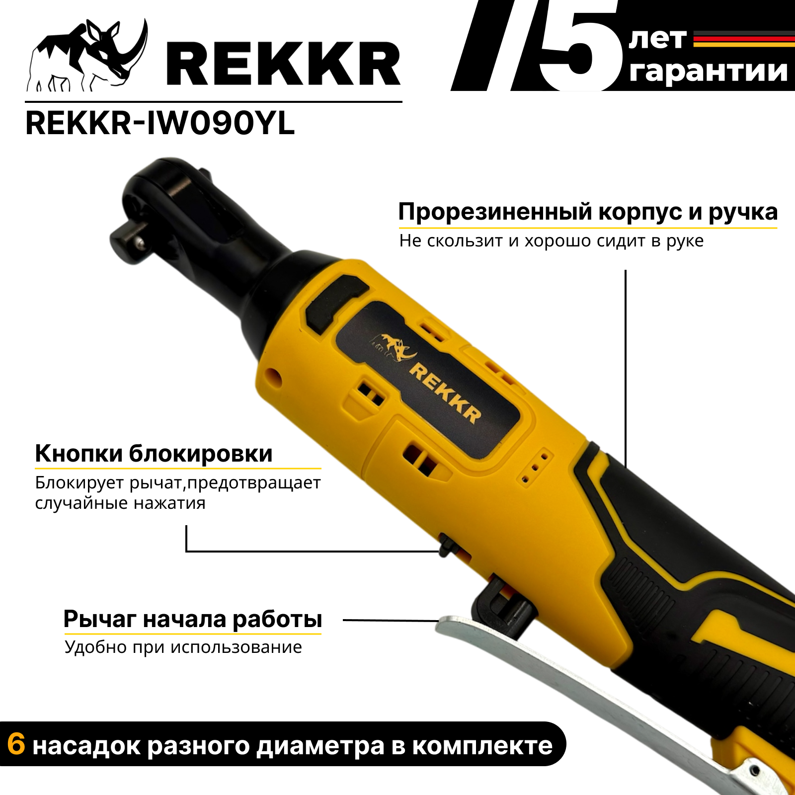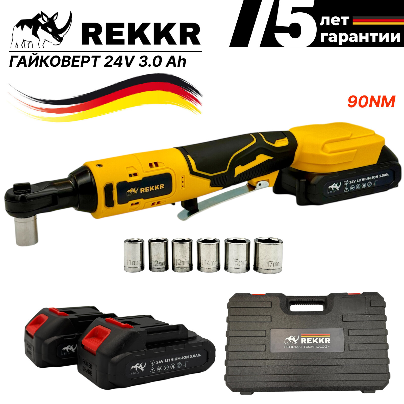Купить Гайковерт угловой, аккумуляторный, щеточный REKKR IW090YL, 2 аккумулятора 24В 3.0Ач, ударный, квадрат 3/8, кейс, зарядка с доставкой по всей России.