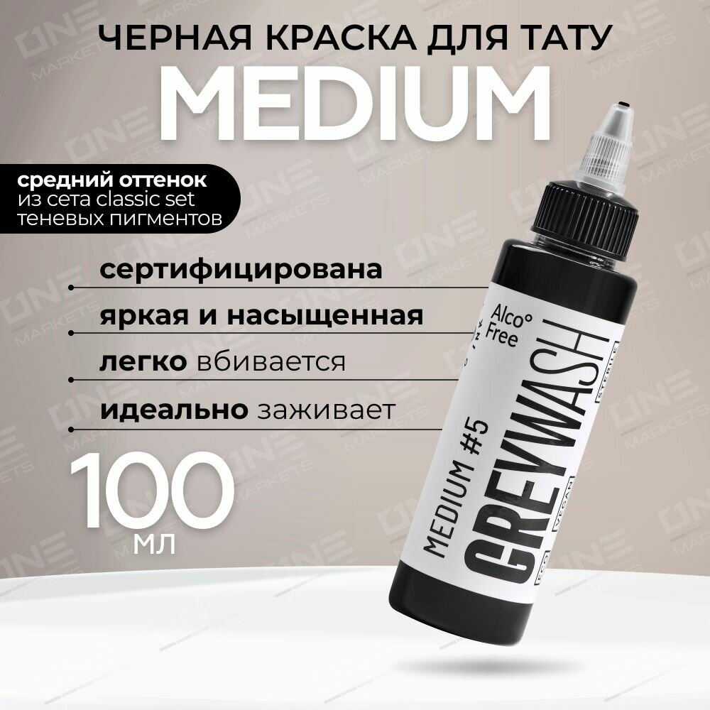 GALLERY TATTOO INK, Greywash Medium #5 Краска для татуировки, пигмент для тату, грейвош — 100 мл: сравнение цен, характеристики, фото, актуальное наличие и цены.