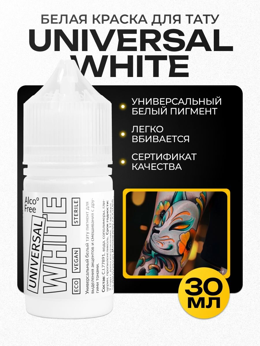 GALLERY TATTOO INK, Universal White Краска для татуировки, пигмент для тату, белая — 30 мл: сравнение цен, характеристики, фото, актуальное наличие и цены.
