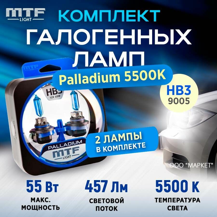 Галоген MTF набор HB3 9005 12V 55w Palladium, 5500К, 457 Лм, 2 шт.: сравнение цен, характеристики, фото, актуальное наличие и цены.