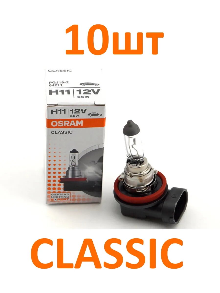 Галогенная лампа Osram H11 CLASSIC 12V 55W, 64211CLC 10шт: сравнение цен, характеристики, фото, актуальное наличие и цены.