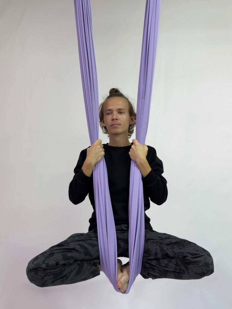 Профессиональный гамак для Флай йоги, Аэро йоги, Аэрострейчинга, антигравити, йоги, релакса, воздушной йоги, пилатеса, баланса, стретчинга, растяжки, медитации, развития координации, шпагата, ЗОЖ, отдыха, спорта, красоты и здоровья, фитнеса, акробатики, воздушной гимнастики, FlyDance, для тренировки сложных перевёрнутых асан в йоге, детской йоги в гамаках в фитнес студии, дома, на природе, на даче, в квартире для реабилитации, исправления осанки, искривления позвоночника, при лечении спины, межпозвонковых грыж и протрузий из высокопрочной, долговечной, износостойкой ткани со стрейч-эффектом, хорошо пружинит на 5-7 см вниз. Очень приятный на ощупь. Ширина полотна позволяет лежать в гамаке во весь рост.