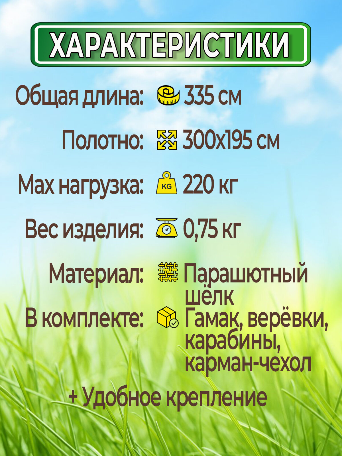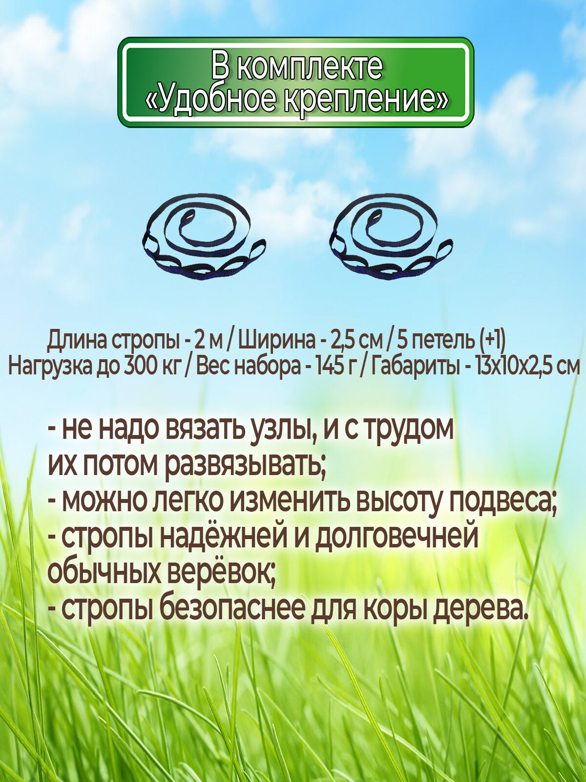 Гамак с доп. креплением (стропы с петлями), из нейлона, 300х195 см: сравнение цен, характеристики, фото, актуальное наличие и цены.