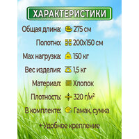 Гамак с креплением (стропы с петлями + s), из хлопка, 200х150 см