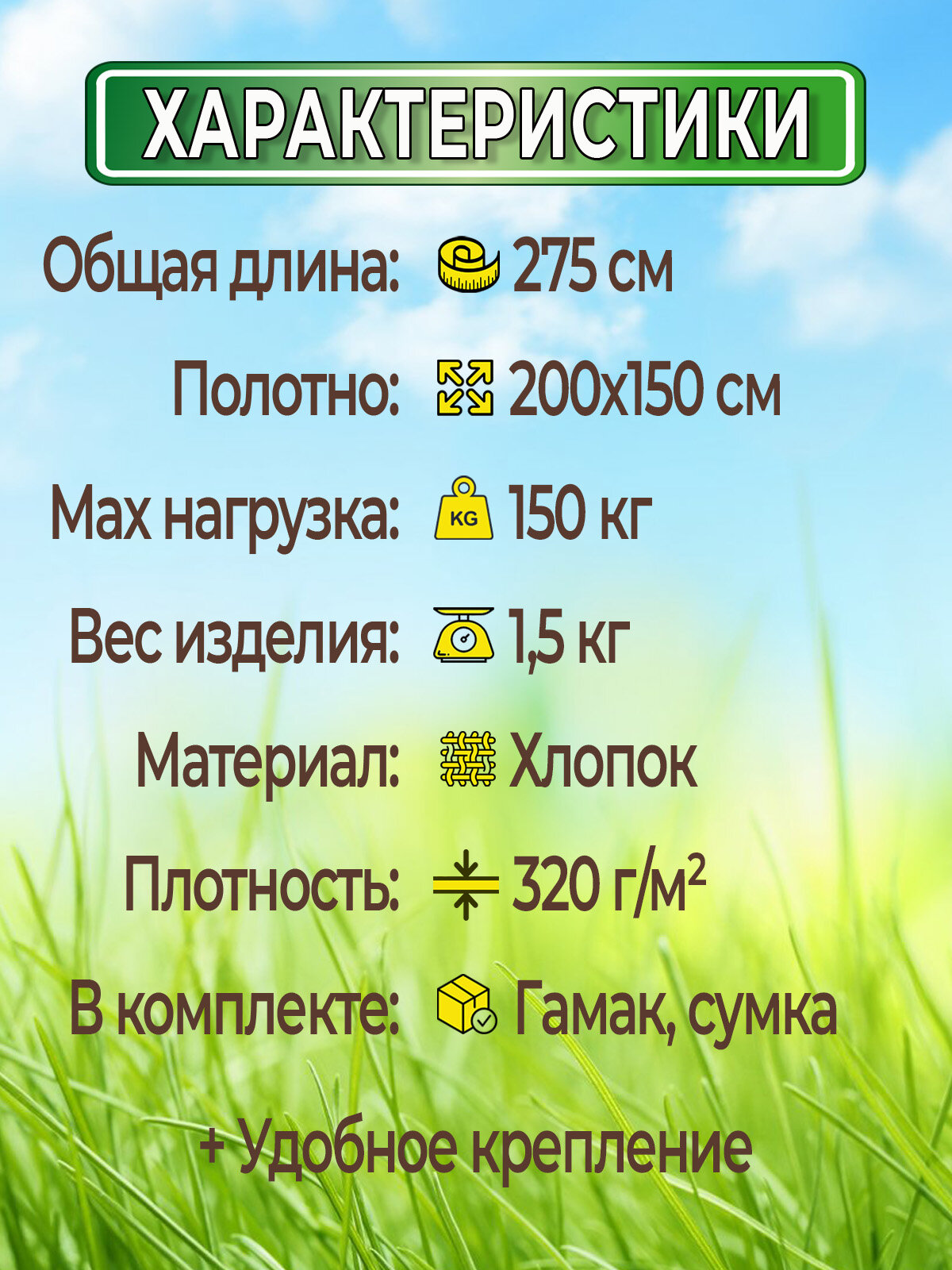 Гамак с креплением (стропы с петлями + s), из хлопка, 200х150 см: сравнение цен, характеристики, фото, актуальное наличие и цены.