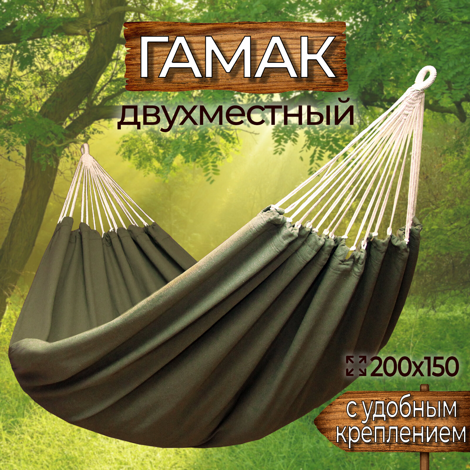 Представляем вашему вниманию двухместный однотонный гамак из хлопка. Гамак выполнен в тёмно-зеленом цвете. Для того чтобы цвет дольше оставался насыщенным, рекомендуется располагать гамак в тени, так как хлопок подвержен выгоранию на солнце. Мягкая хлопковая поверхность гамака приятно обволакивает тело и понравится, как взрослым, так и детям. Кстати говоря, дети могут использовать его для своих игр, активно в нём раскачиваясь, а габариты и грузоподъёмность гамака, позволят выдержать сразу нескольких детей или двух взрослых.