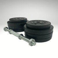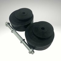 Цельнометаллические диски изготовлен из высокопрочной стали. Обрезинены по специальной технологии нанесения резинового покрытия для предотвращения коррозии и износа. Диски имеют специальную форму, благодаря чему гантель в собранном виде обладает идеальным размером для выполнения упражнений.
