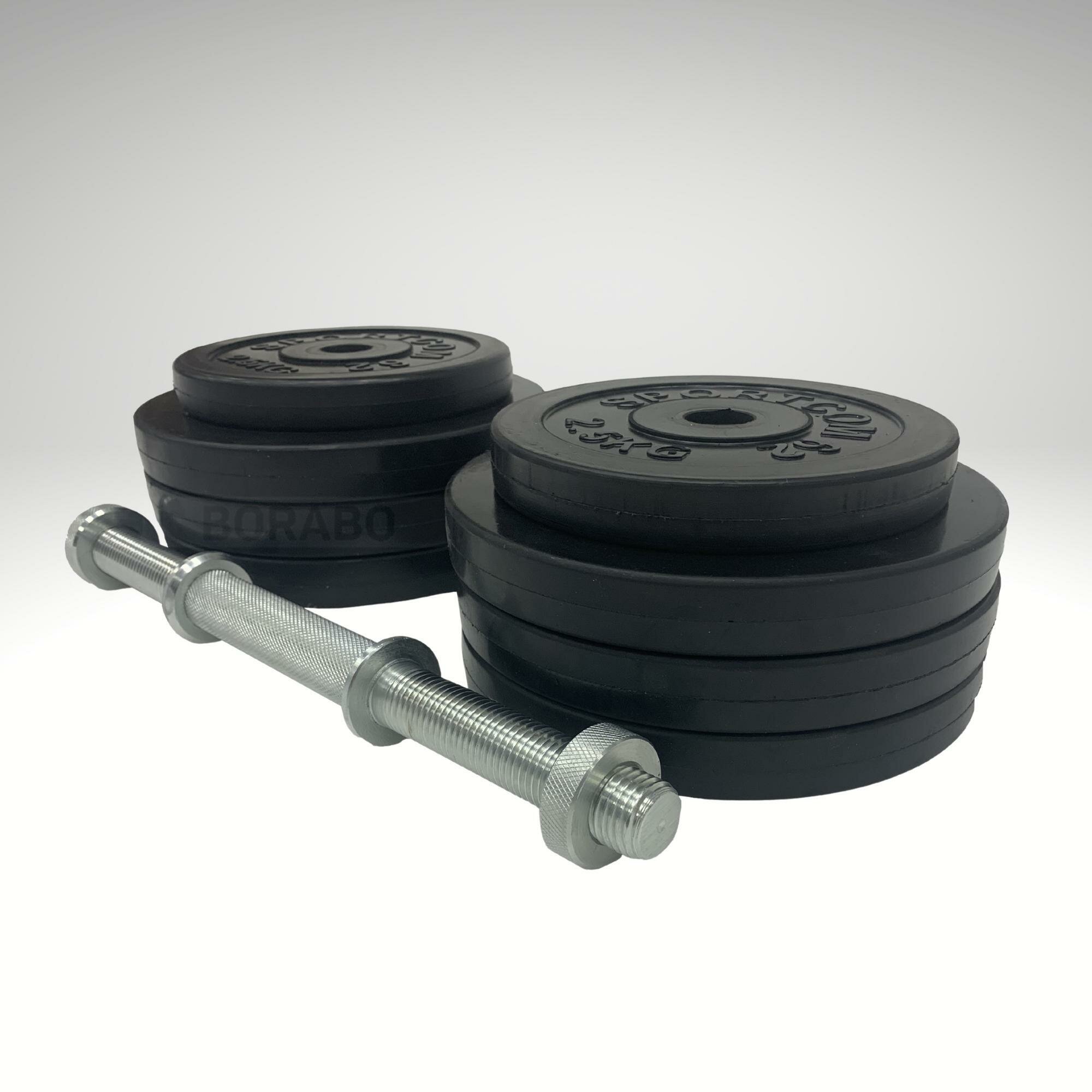 Комплект разборной обрезиненной гантели включает: