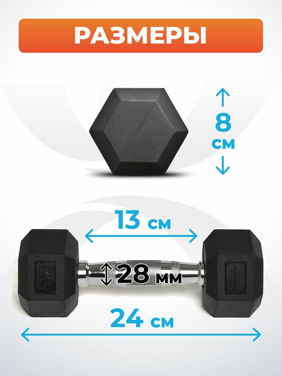 Купить Гантель для фитнеса гексагональная металлическая Atletika24, 3 кг, прорезиненная с доставкой по всей России.