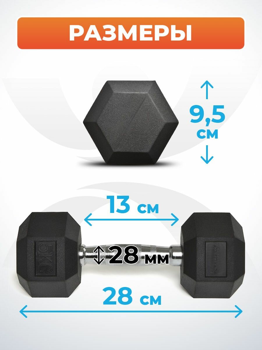 Купить Гантель для фитнеса гексагональная металлическая Atletika24, 5 кг, прорезиненная с доставкой по всей России.