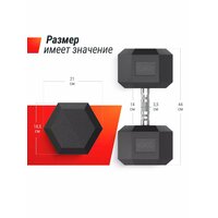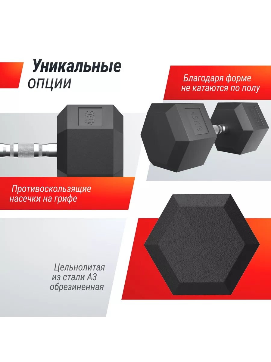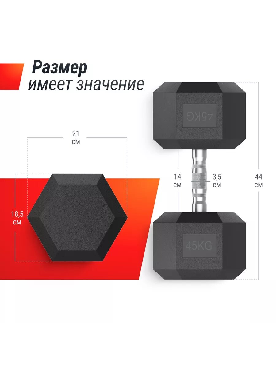 Купить Гантель гексагональная UNIX Fit обрезиненная, 45 кг, прорезиненная спортивная, 1 шт, черный UNIXFIT с доставкой по всей России.