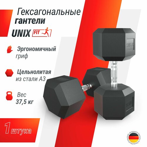 Гантель гексагональная UNIX Fit обрезиненная, прорезиненная спортивная литая неразборная, 37,5 кг, 1 шт.: сравнение цен, характеристики, фото, актуальное наличие и цены.