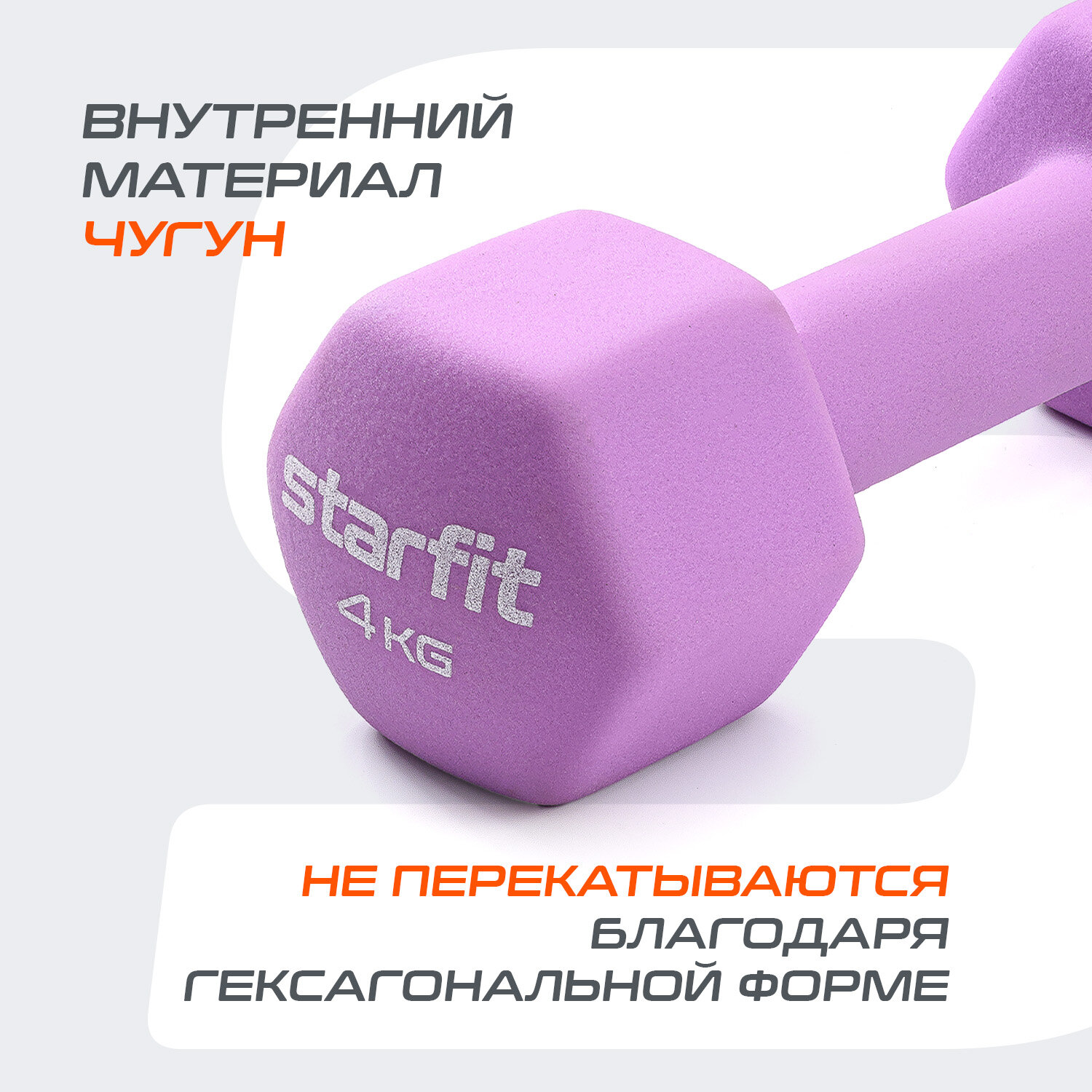 Купить 2шт Гантели 4 кг, неопреновая, фиолетовый пастельный, DB-201 Starfit с доставкой по всей России.