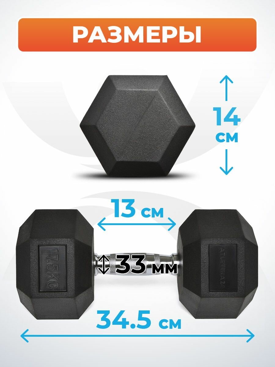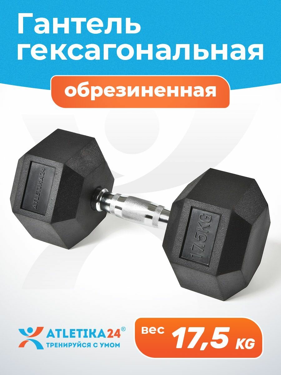 Гантель гексагональная 17,5 кг Atletika24 обрезиненная — для силовых тренировок, фитнеса и домашнего спорта: сравнение цен, характеристики, фото, актуальное наличие и цены.