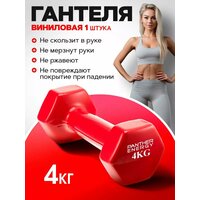 Купить Гантель Panther Energy, виниловое покрытие, 4 кг, 1 штука, неразборная, красная с доставкой по всей России.