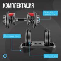Гантель оснащена рукояткой диаметром 33 мм, что обеспечивает надежный захват и комфорт во время тренировок. В комплект входит восемь дисков и одна ручка для гантелей, что позволяет легко менять уровень нагрузки. Поставляемая подставка из ABS и PP пластика обеспечивает удобное хранение и экономит место, что делает использование гантелей еще более практичным.