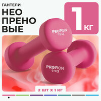 Гантели неопреновые PROIRON 2 шт, вес по 1 кг, розовые, идеально подходят для разнообразных упражнений фитнеса, а также для укрепления мышц верхней части тела.