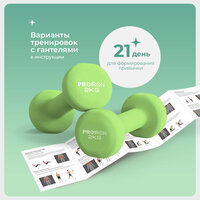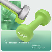 Гантели неопреновые PROIRON 2 шт, вес по 2 кг, яркие зеленые, идеально подходят для разнообразных упражнений фитнеса, а также для укрепления мышц верхней части тела.