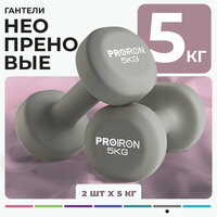 Набор неопреновых гантелей PROIRON - 2 штуки, вес по 5 кг в современном дизайне серого цвета идеально подходит для разнообразных упражнений в рамках фитнеса, а также для укрепления мышц верхней части тела.