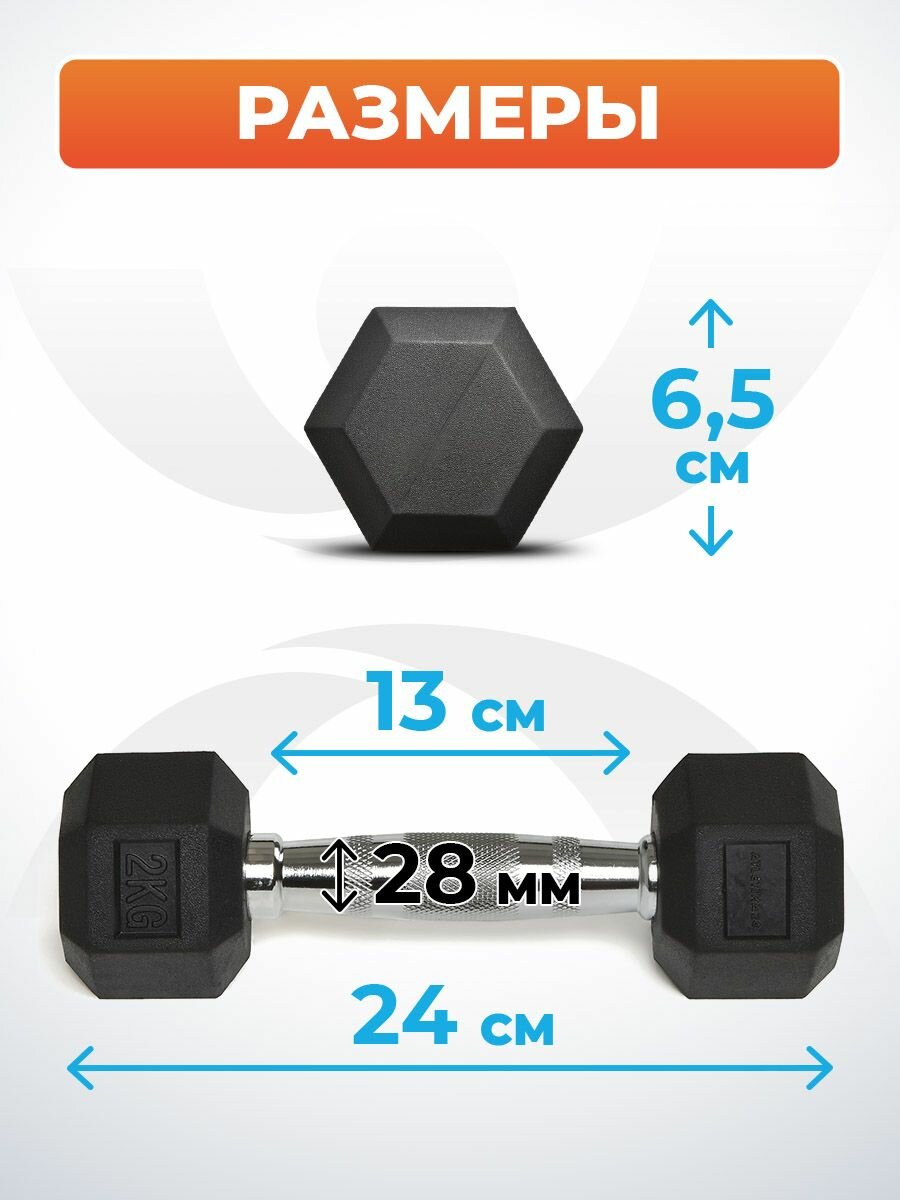 Купить Гантели гексагональные 2 кг Atletika24 обрезиненные, набор 2 шт — спортивный инвентарь для фитнеса и силовых тренировок с доставкой по всей России.