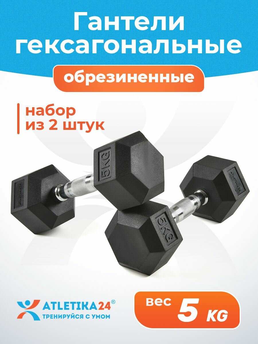 Гантели гексагональные 5 кг Atletika24 обрезиненные, набор 2 шт — спортивный инвентарь для фитнеса и силовых тренировок: сравнение цен, характеристики, фото, актуальное наличие и цены.