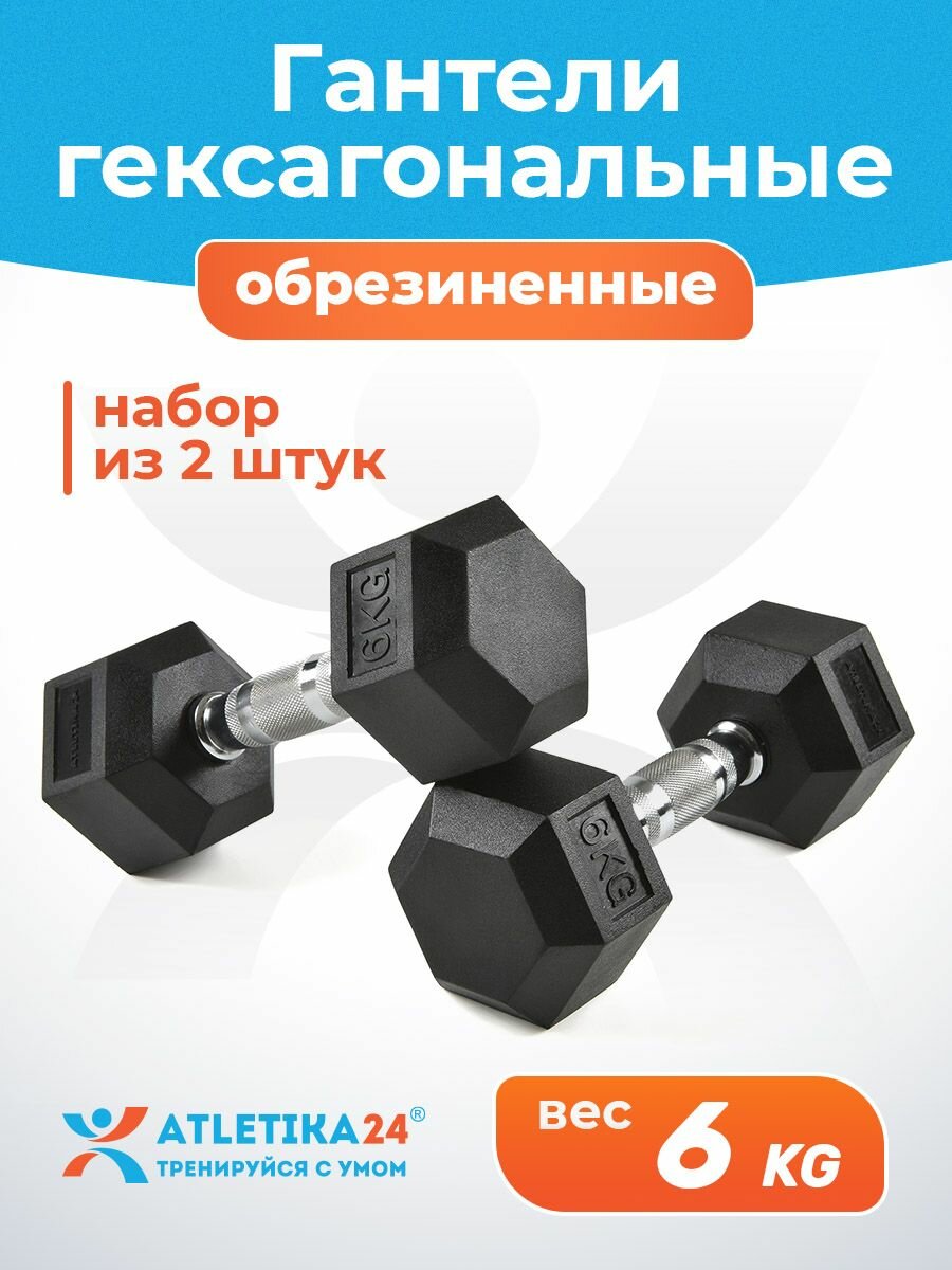 Гантели гексагональные 6 кг Atletika24 обрезиненные, набор 2 шт — спортивный инвентарь для фитнеса и силовых тренировок: сравнение цен, характеристики, фото, актуальное наличие и цены.