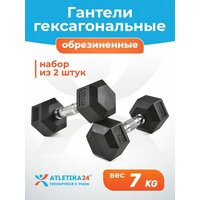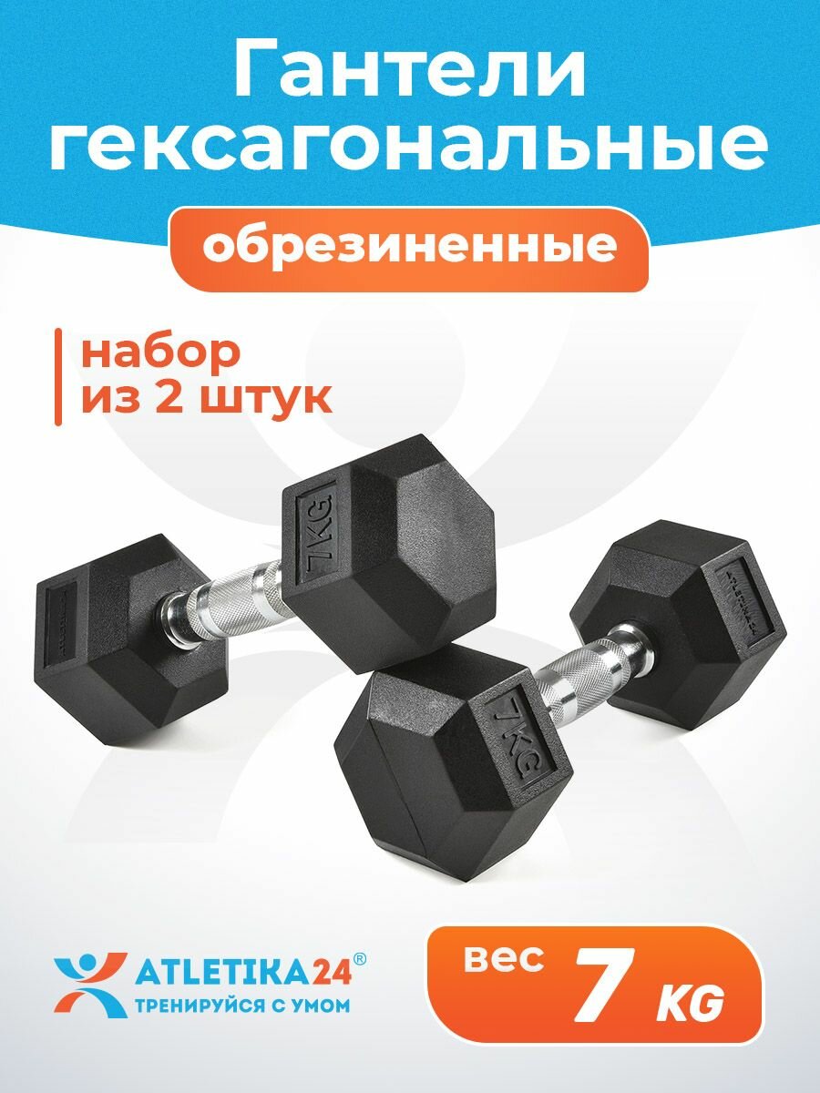 Купить Гантели гексагональные 7 кг Atletika24 обрезиненные, набор 2 шт — спортивный инвентарь для фитнеса и силовых тренировок с доставкой по всей России.