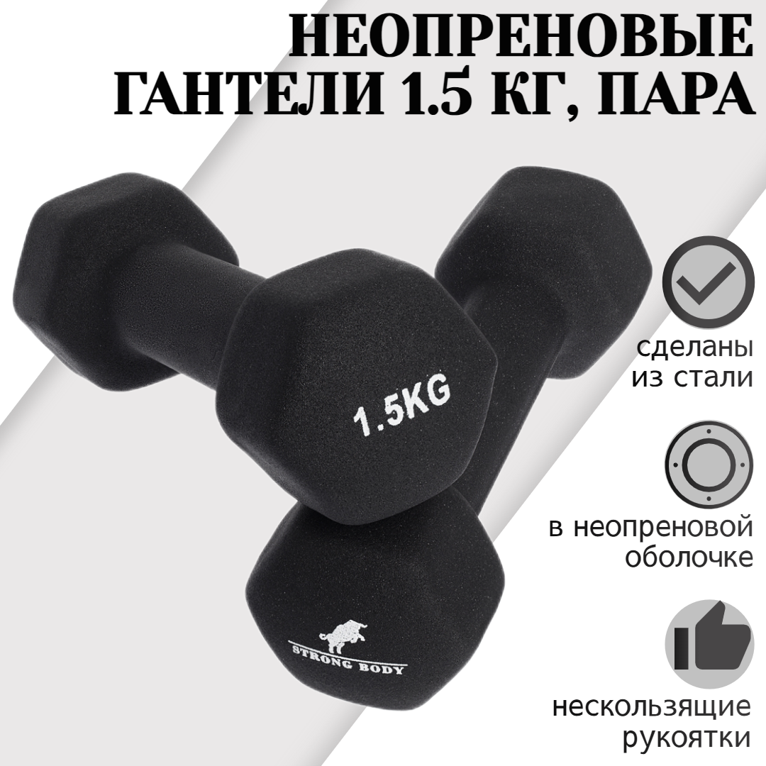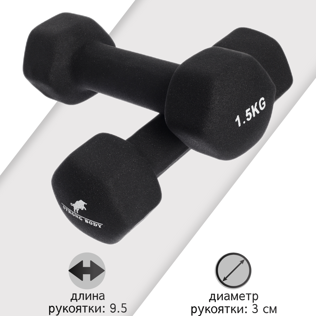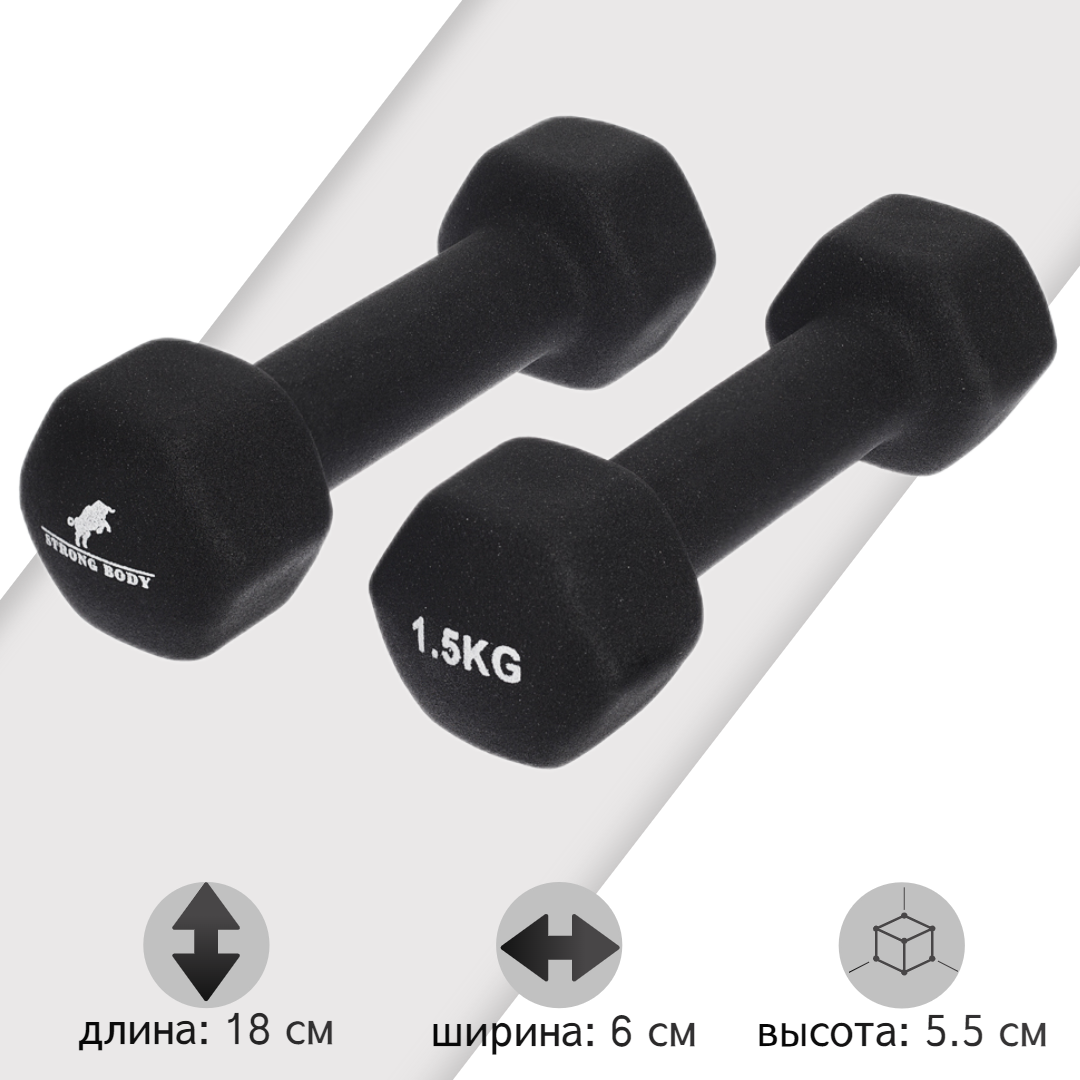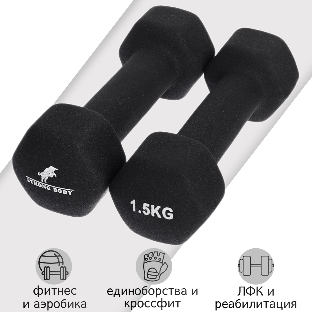 Купить Гантели неопреновые 1.5 кг 2 шт STRONG BODY, черные (гантель для спорта и фитнеса 1,5 кг, пара) с доставкой по всей России.