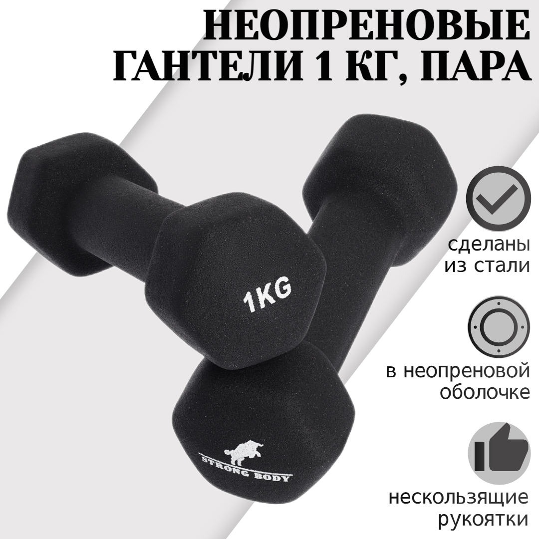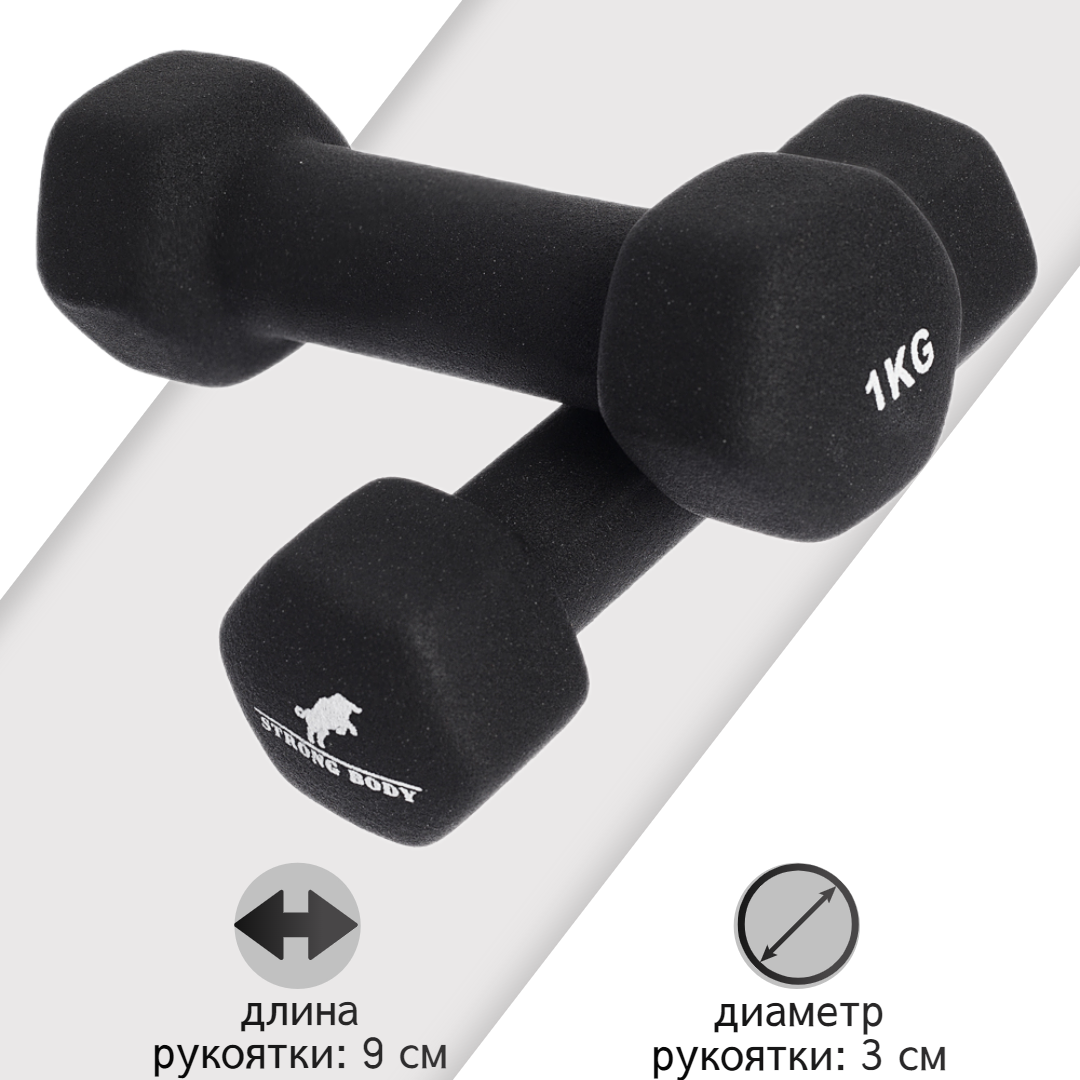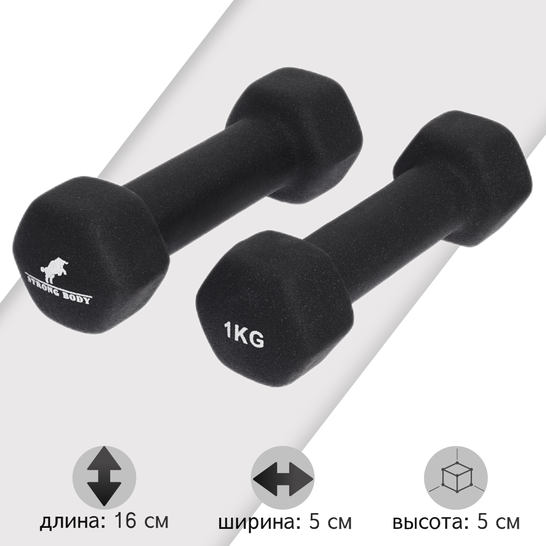 Купить Гантели неопреновые 1 кг 2 шт STRONG BODY, черные (гантель для спорта и фитнеса 1 кг, пара) с доставкой по всей России.