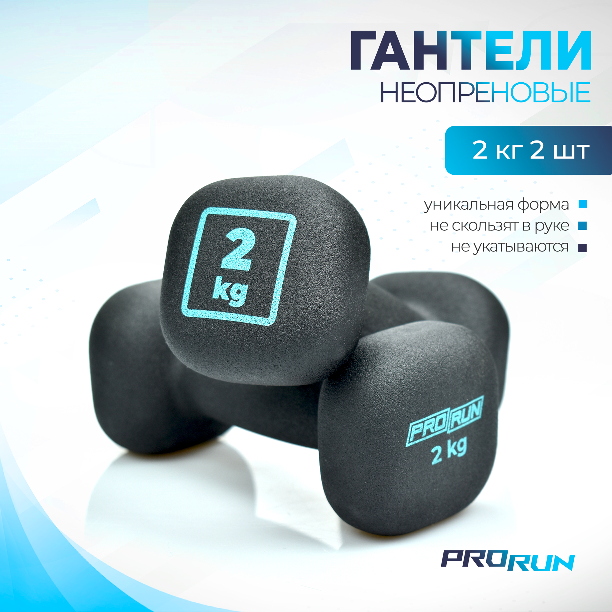 Встречайте новинку от ProRun! Набор неопреновых гантелей 2 шт х 2 кг, необычной квадратной формы комфортно лежат в руках, не катаются по полу и не портят его. Черные гантели неопреновые выполнены из высококачественного металла с мягким неопреновым покрытием и имеют оптимальный размер для занятий спортом. Такие гантели удобно держать в руках, а неопрен в течение всей тренировки отводит выделяющуюся влагу из зоны контакта ладони с рукояткой гантели, оставляя ее сухой и не позволяя гантели выскальзывать. Они помогают укрепить мышцы рук, грудной клетки, верхней части спины и плеч. Благодаря небольшому размеру гантели удобно хранить, они не займут много места в квартире. В отличие от обычных металлических гантелей, неопреновые гантели меньше гремят. Гантели квадратные ProRun – это отличный подарок для любителей силовых тренировок.