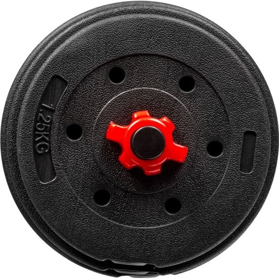 Гантели состоят из дисков разного веса, что позволяет постепенно увеличивать нагрузку и улучшать физическую форму. В комплект входят диски весом 1,25 кг, 1,5 кг, 2 кг, 2,5 кг и 4 фиксатора.