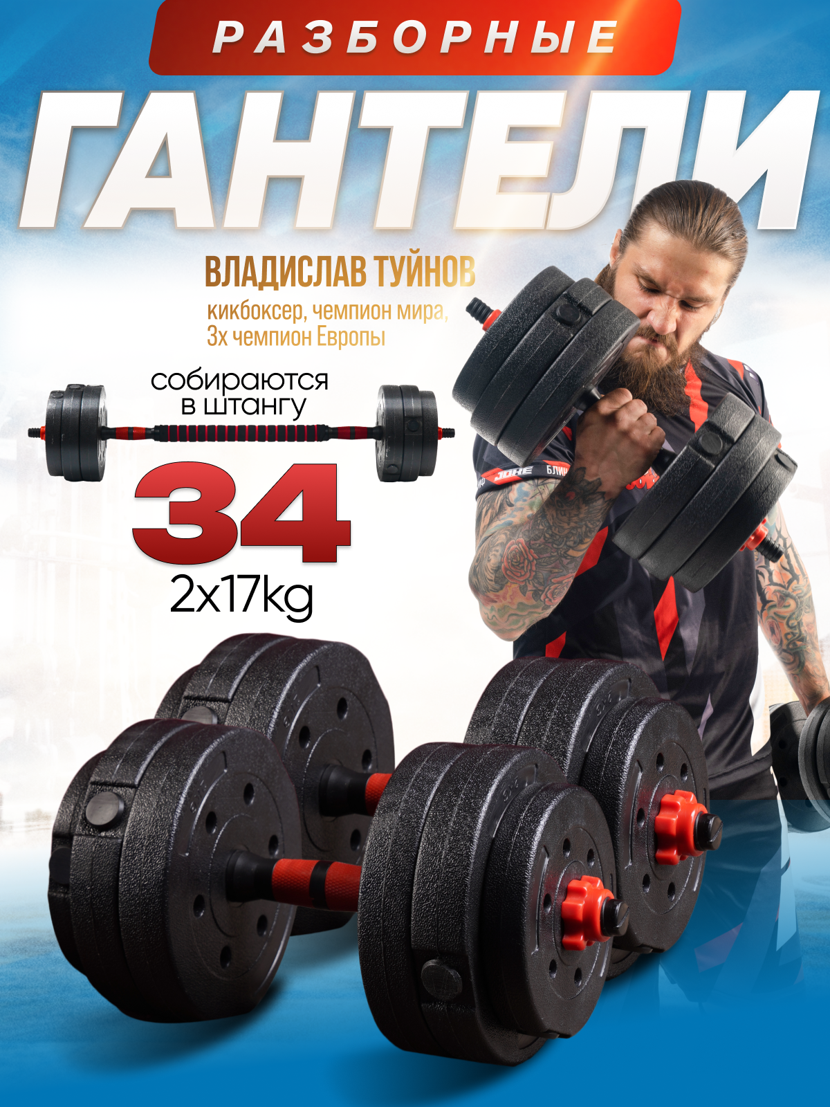 Гантели разборные 17 кг 2 шт, общий вес 34 кг - это отличный выбор для тех, кто хочет поддерживать свое тело в форме и улучшать свои физические показатели.