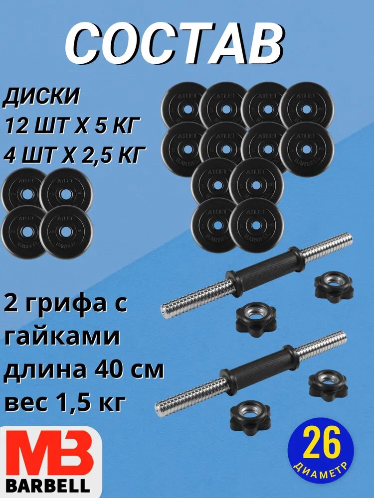 Купить Гантели разборные обрезиненные комплект 2 шт по 36,5 кг MB Barbell с доставкой по всей России. Гантели разборные обрезиненные комплект 2 шт по 36,5 кг MB Barbell: сравнение цен, характеристики, фото, актуальное наличие и цены.