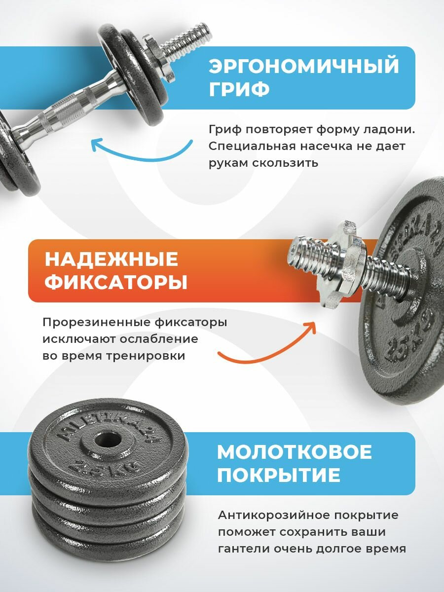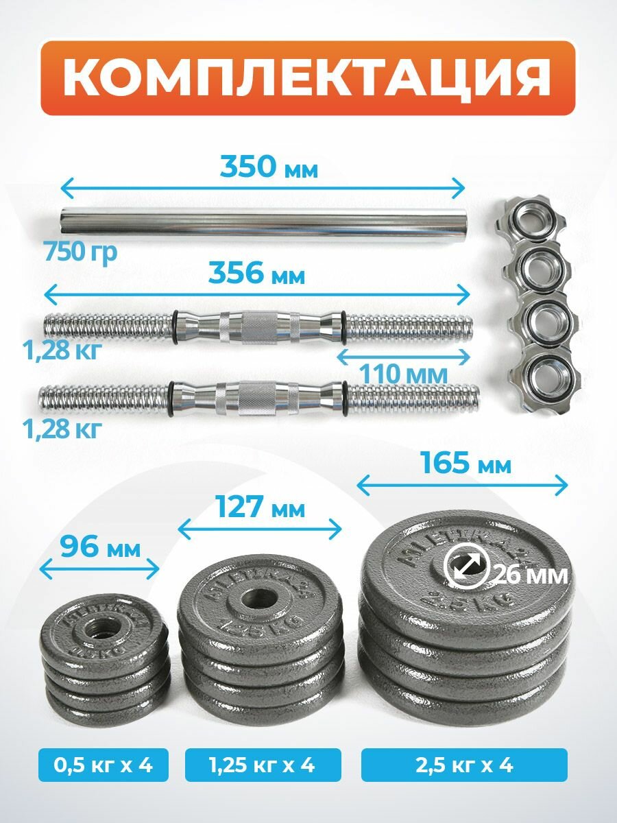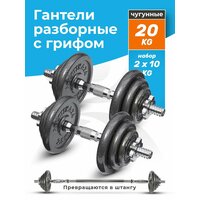 Набор из двух гантелей разборных по 10 кг и переходника для штанги Atletika24. В комплект входят: