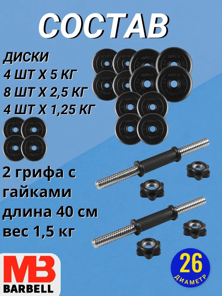 Купить Гантели разборные обрезиненные комплект 2 шт по 24 кг MB Barbell с доставкой по всей России. Гантели разборные обрезиненные комплект 2 шт по 24 кг MB Barbell: сравнение цен, характеристики, фото, актуальное наличие и цены.