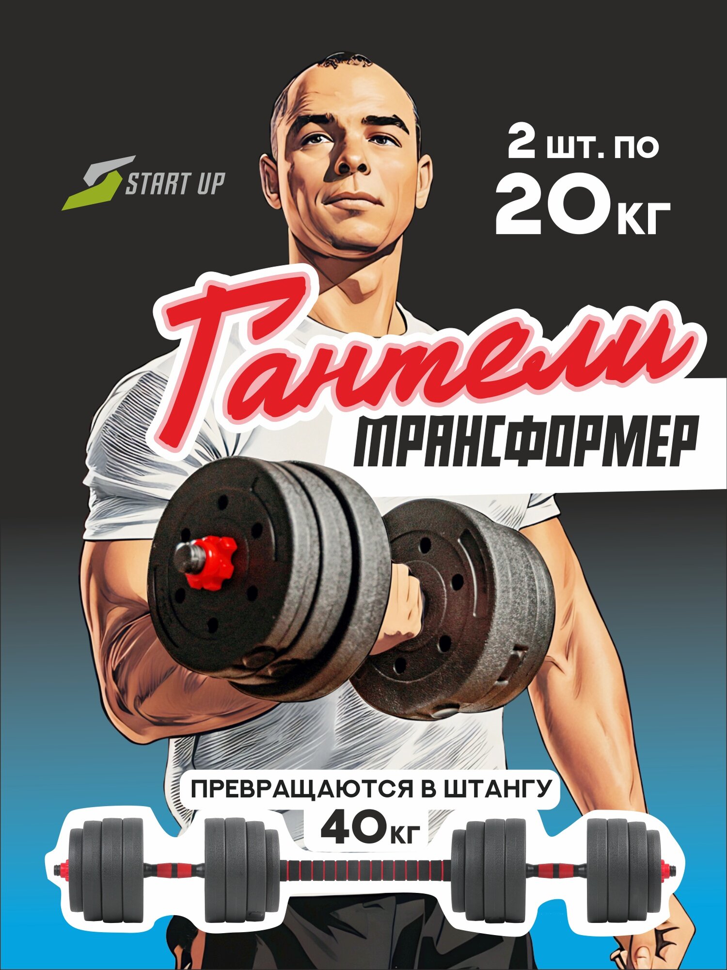 Гантели разборные Start Up ECE 075 2 х 20 кг трансформируемые в штангу 40 кг: сравнение цен, характеристики, фото, актуальное наличие и цены.