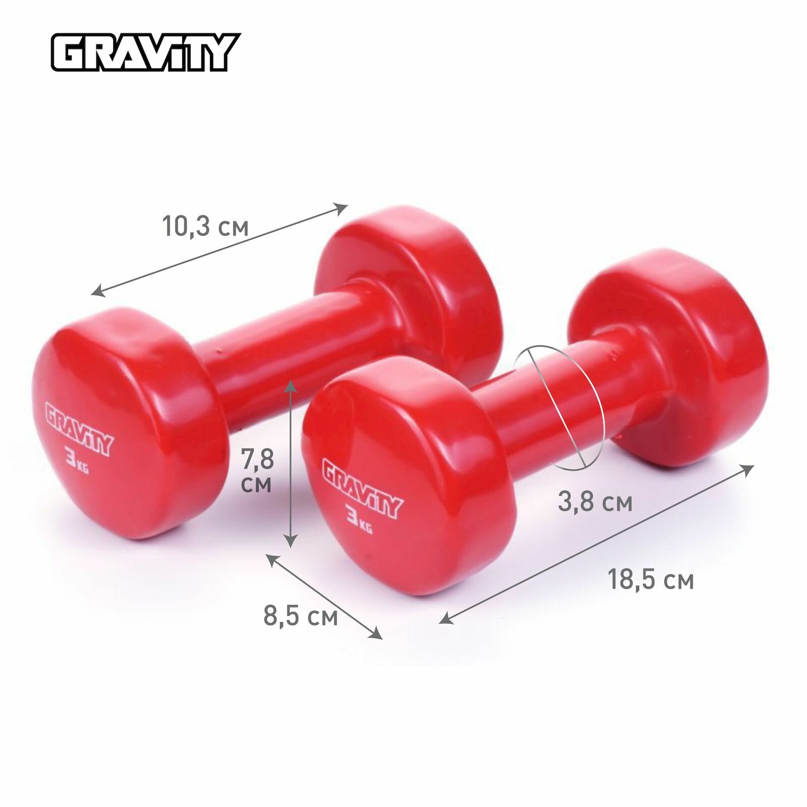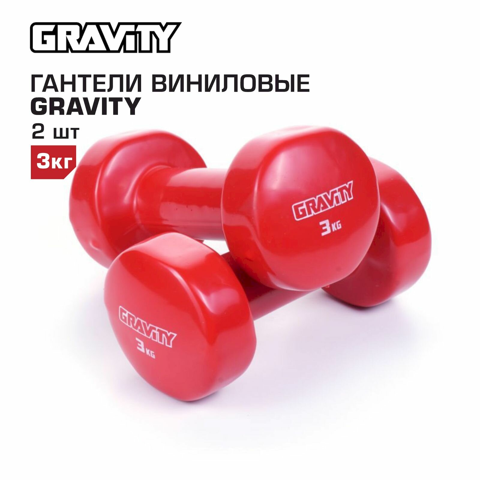 Гантели с виниловым покрытием Gravity, красные, 3 кг, пара
