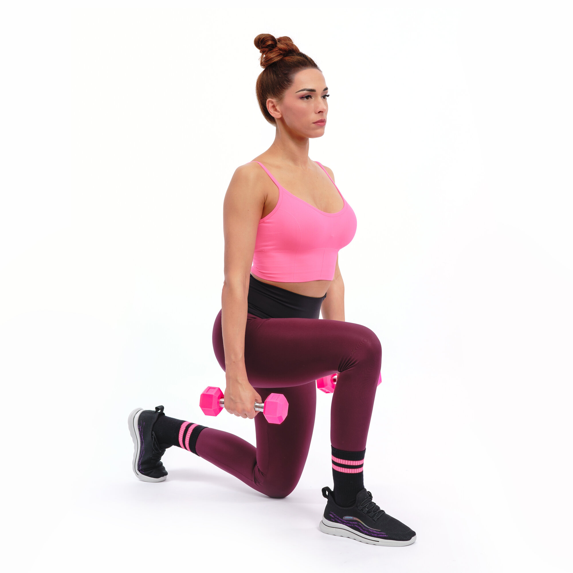Набор домашних фитнес гантелей 2 кг 2 шт от ProRun идеально подойдет как для силовых тренировок, так и для фитнес аэробики и лечебной физкультуры. Гантель - это спортивный снаряд, своего рода тренажер, предназначенный для развития мускулатуры, мышечного тонуса, набора мышечной массы, создания рельефа и силы мускулатуры. Он служит для укрепления мышц рук, груди и плеч. Эти спортивные гантели сделаны из прочного материала ПВХ, а гриф - из хромированной стали. Гантели имеют яркое розовое виниловое покрытие цвета бабл гам. Гриф выполнен из высококачественного металла, а его поверхность оснащена противоскользящими насечками для более комфортных тренировок. Наши фитнес гантели имеют оптимальный размер и вес для занятий спортом и их удобно держать в руках. Эти гантели для дома имеют специальную шестиугольную гексагональную форму, которая предотвращает их укатывание. В отличие от металлических гантелей, пластиковые гантели не гремят и не повреждают покрытие пола. Кроме того, наши гантели не просто пластиковые, они имеют обрезиненное покрытие. Такое покрытие - отличная альтернатива неопрену, благодаря которому гантели не шумят и приятны на ощупь. Такие виниловые гантели - идеальный фитнес аксессуар, они не только имеют эргономичную форму, но и интересный привлекательный дизайн, поэтому смогут стать идеальным дополнением к вашему интерьеру. Более того, этот комплект гантелей - отличный подарок женщинам, увлекающимся фитнесом и силовыми тренировками. Вы определенно не пожалеете о покупке этого спортинвентаря. Будьте всегда в тонусе вместе с ProRun!