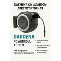 GARDENA Катушка садовая со шлангом настенная аккумуляторная Gardena PowerRoll XL 35M – это инновационное решение для комфортного полива и аккуратного хранения шланга. Эта автоматическая катушка для шланга с электроприводом избавит вас от необходимости вручную сматывать шланг после каждого использования. Настенная аккумуляторная катушка Gardena вмещает до 35 метров шланга, сохраняя порядок на участке и продлевая срок службы вашего поливочного оборудования.