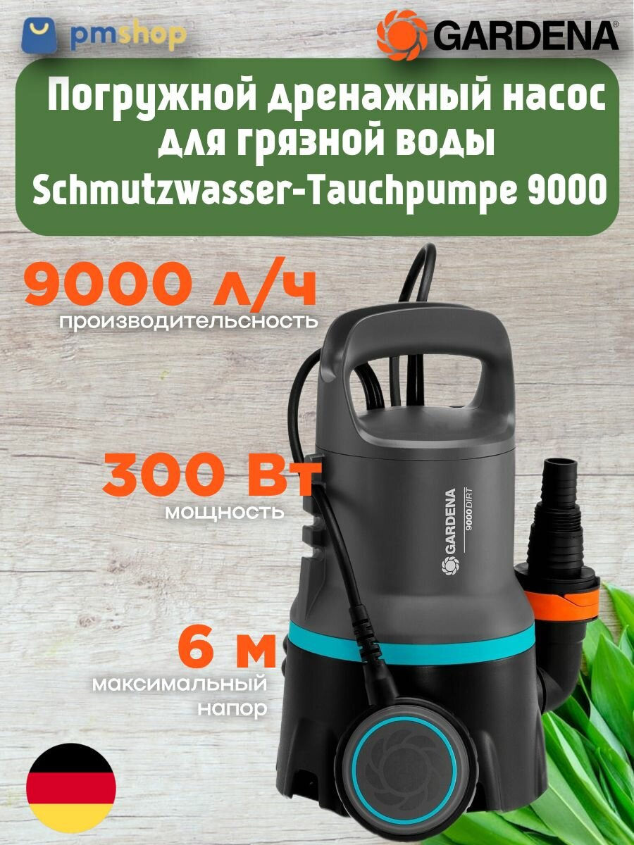 Gardena Schmutzwasser-Tauchpumpe 9000 (9040-61) погружной дренажный насос для грязной воды: сравнение цен, характеристики, фото, актуальное наличие и цены.