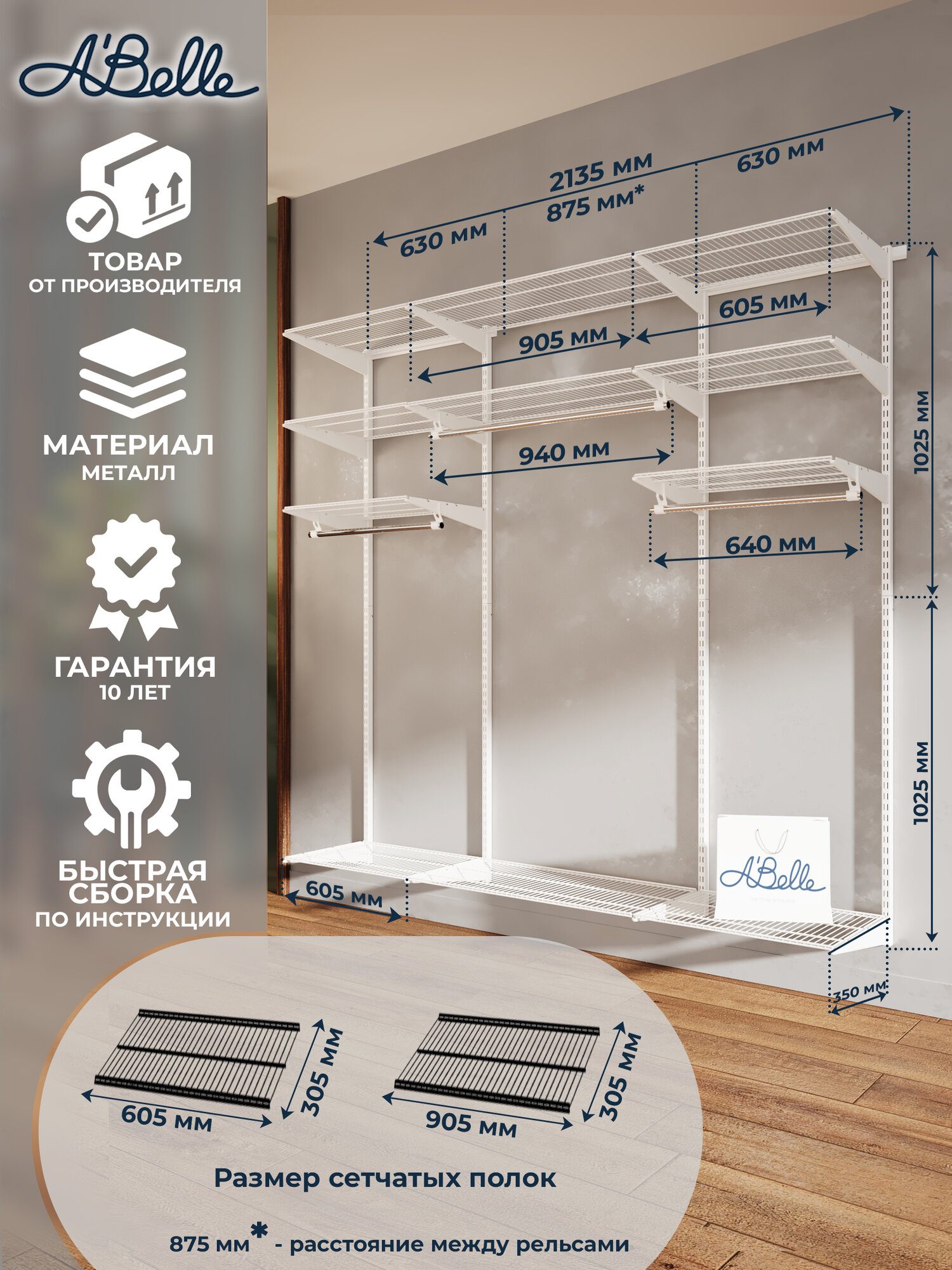 Гардеробная система Abelle AB-1835 LUXE белый, металл,213х205х35см: сравнение цен, характеристики, фото, актуальное наличие и цены.